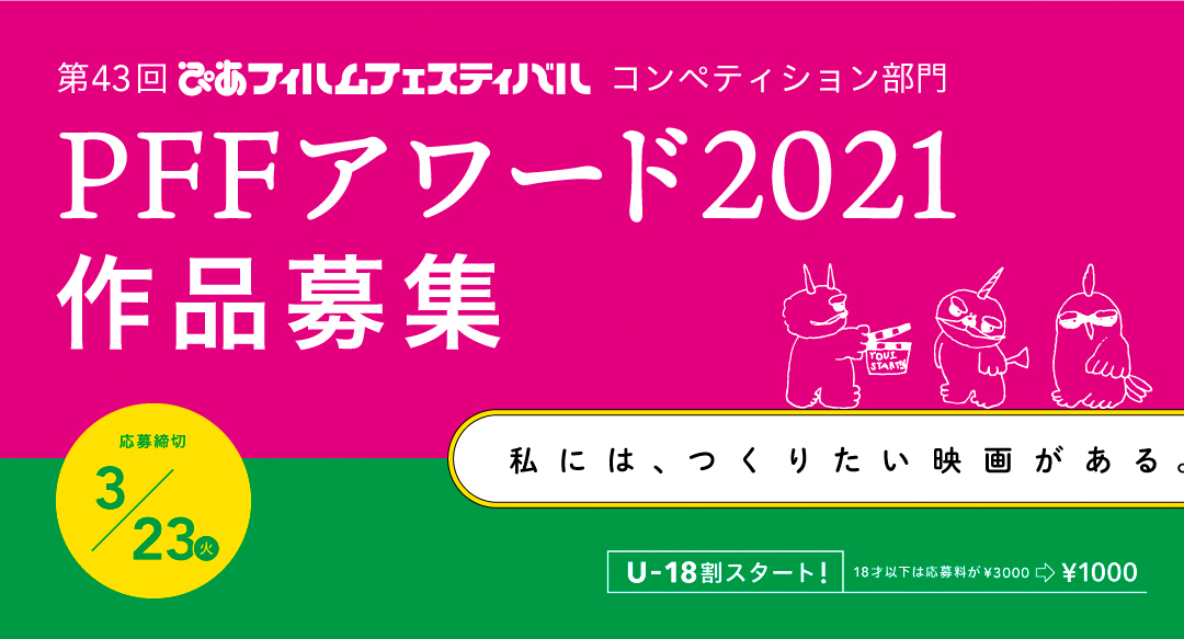 「第43回ぴあフィルムフェスティバル」開催日決定!本日2月1日より「PFFアワード2021」応募受付開始